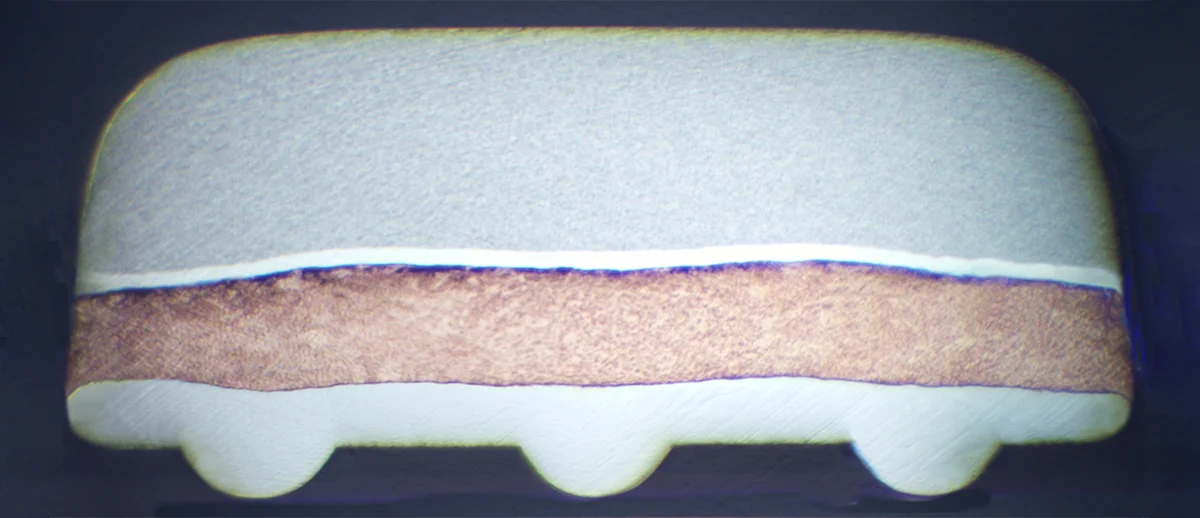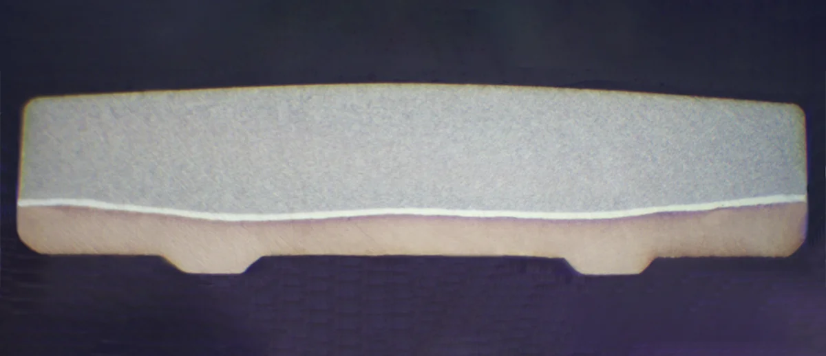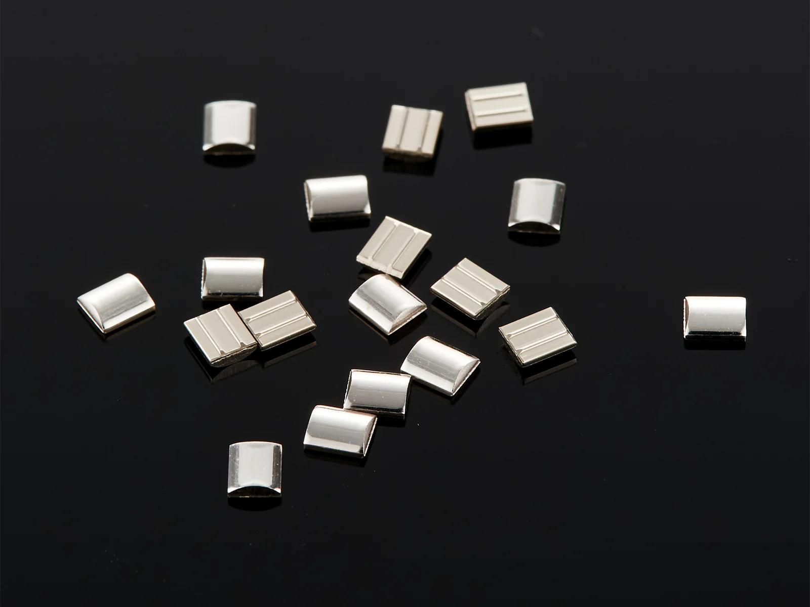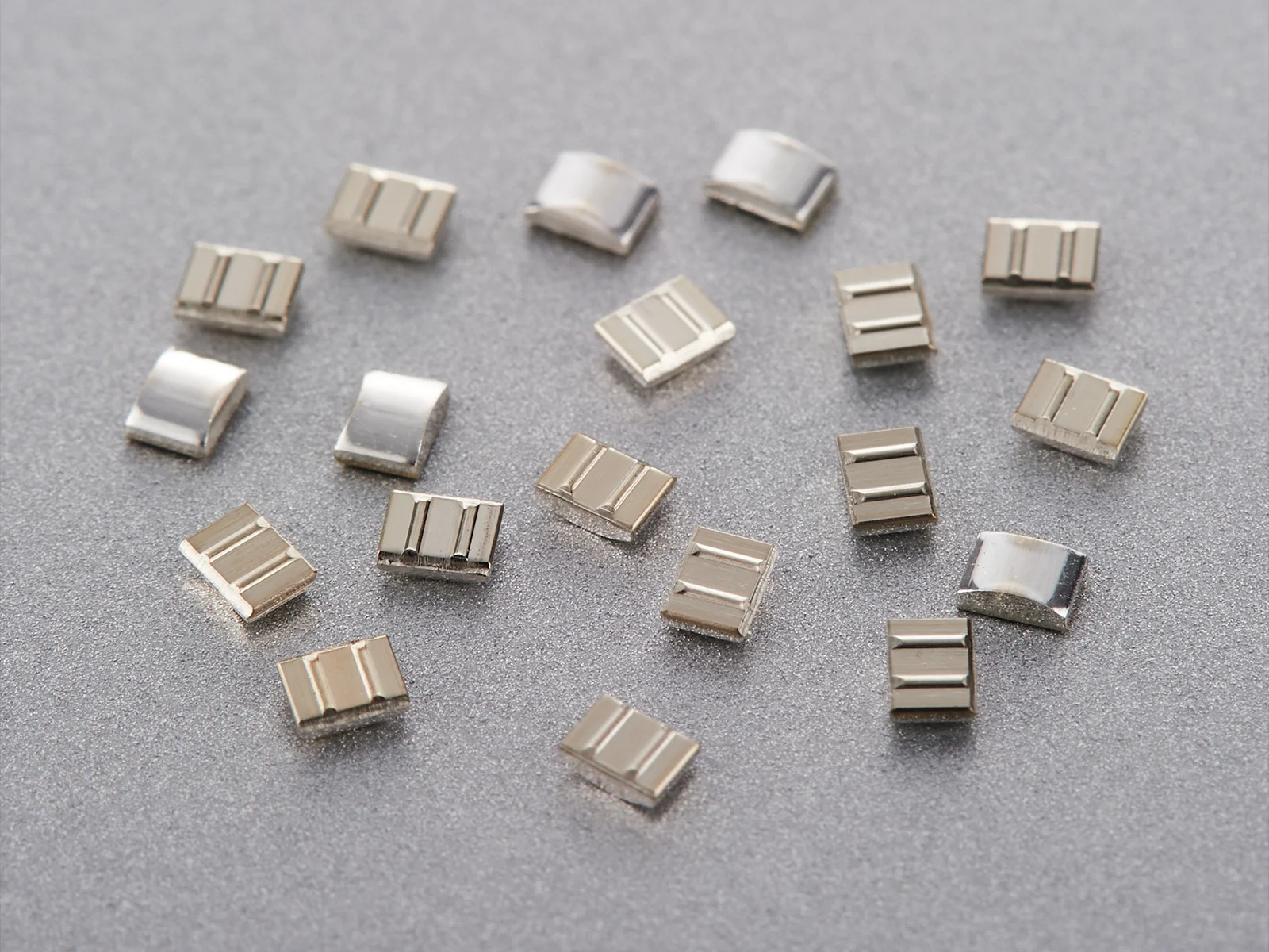 新型焊接触点是异型接点带的衍生品,沿用异型复合接点带的高品质生产工艺,层间形成冶金结合,接合强度高,电接触层表面为镜面。银层厚度可以根据客户需要任意调整;十字交叉使用,动静触点间为线接触,相同体积下,比常规焊接触点和铆钉接点可承载更大电流负载,从而可以间接节约贵金属材料的使用。
